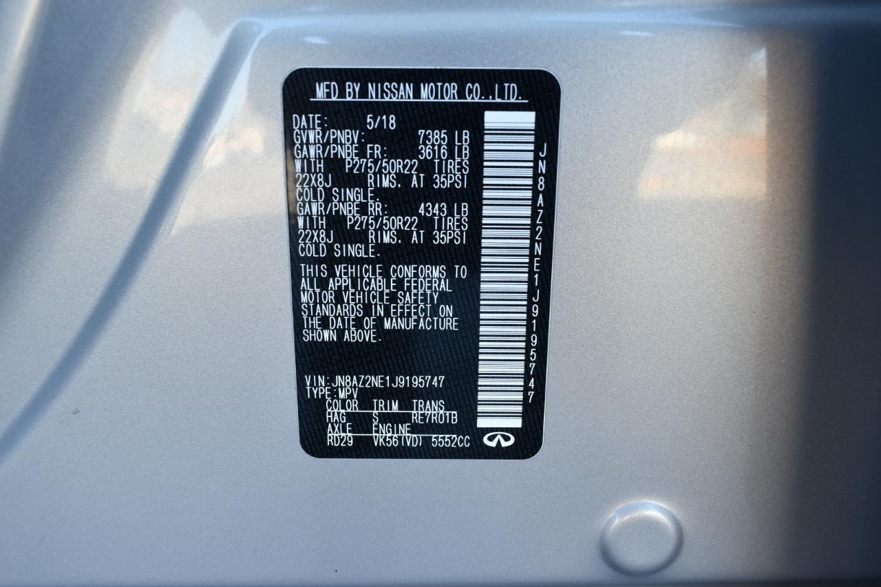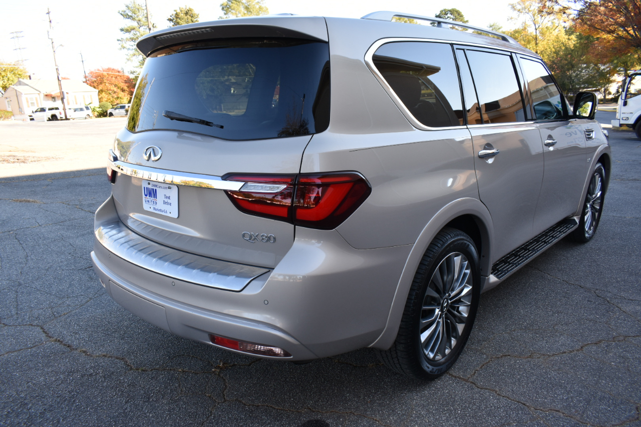2018 INFINITI QX80 AWD 4D SUV Another Great Deal from UWM Cars. One Owner No Accident Reported. Southern Vehicle. It has it all. Leather, Sunroof, Dynamic Cruise Control, Power Options, Bluetooth, 360 Camera, Blindspot, Rear Entertainment, Third Row Seating, Heated Cooling Seats, and too many more options to list. Call today for more information or to schedule a test drive.
